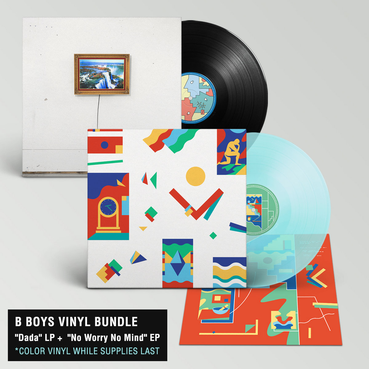 Order B Boys' new LP "Dada" and their 2016 EP "No Worry No Mind" on vinyl for 1 bundled price! Coke bottle clear vinyl copies of "Dada" limited to 300 copies (COLOR VINYL SOLD OUT! all orders will be fulfilled with black vinyl.)